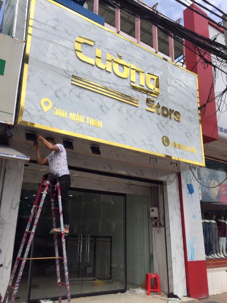 Tấm PVC vân đá trang trí bảng hiểu mặt dụng và mặt tiền nhà .