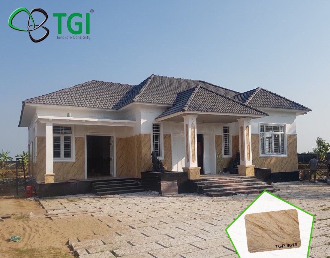 Tấm nhựa óp tường pvc đá hoa cương trang trí vách tường mặt tiền nhà sang trọng .