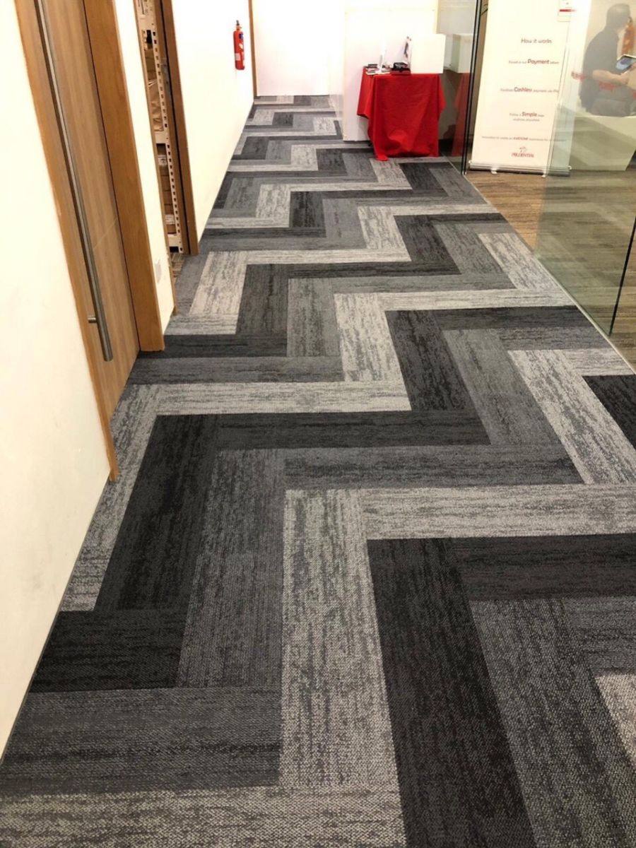 Thảm trải sàn skywalk là xu hương mới nhất của năm 2019 với xu thế văn phòng sự dụng thảm tấm 25cm*100cm thay cho dòng thảm tấm phổ thông 500*500mm với đặc tính đẹp là có nhiều các phôii lót xương cá lót mũi tên lót so le hay lót tam giác đều được.